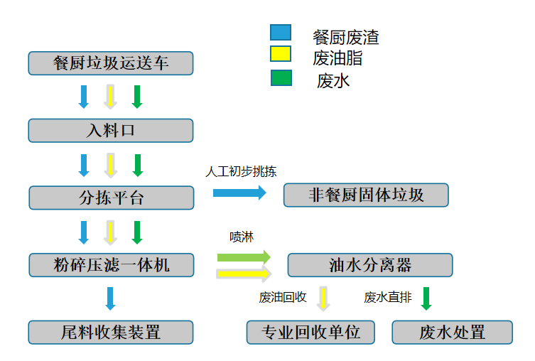 垃圾分類已成為一項環(huán)境保護的基本國策。而其中的餐廚垃圾因其在收集和轉運過程中的容易出現跑、冒、滴、漏等現象,會造成蚊蟲病菌的滋生,進而造成嚴重的環(huán)境衛(wèi)生問題;而餐廚垃圾中含有高鹽分和高油分,如果直接填埋會對土壤造成嚴重的破壞。但同時餐廚垃圾業(yè)主要由有機質和水分組成,具備可資源化利用和可就地處理的特點。國家對于餐廚垃圾處理的要求是:減量化處理,無害化處置,資源化利用。針對上述問題,餐廚垃圾處理設備便應運而生。